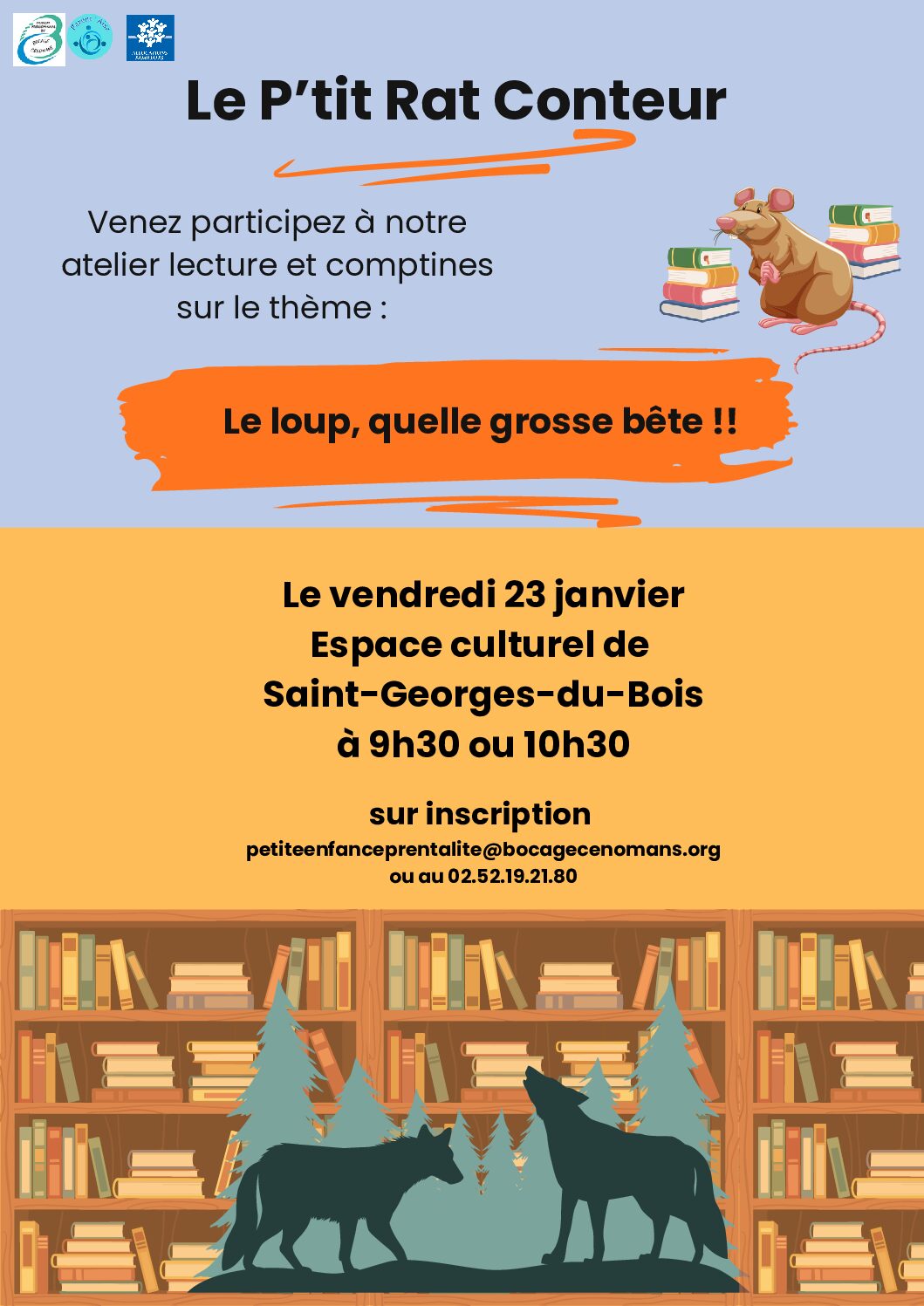 « Le P’tit Rat Conteur revient le vendredi 23 janvier à l’Espace culturel de Saint-Georges-du-Bois ! Deux séances sont proposées : à…