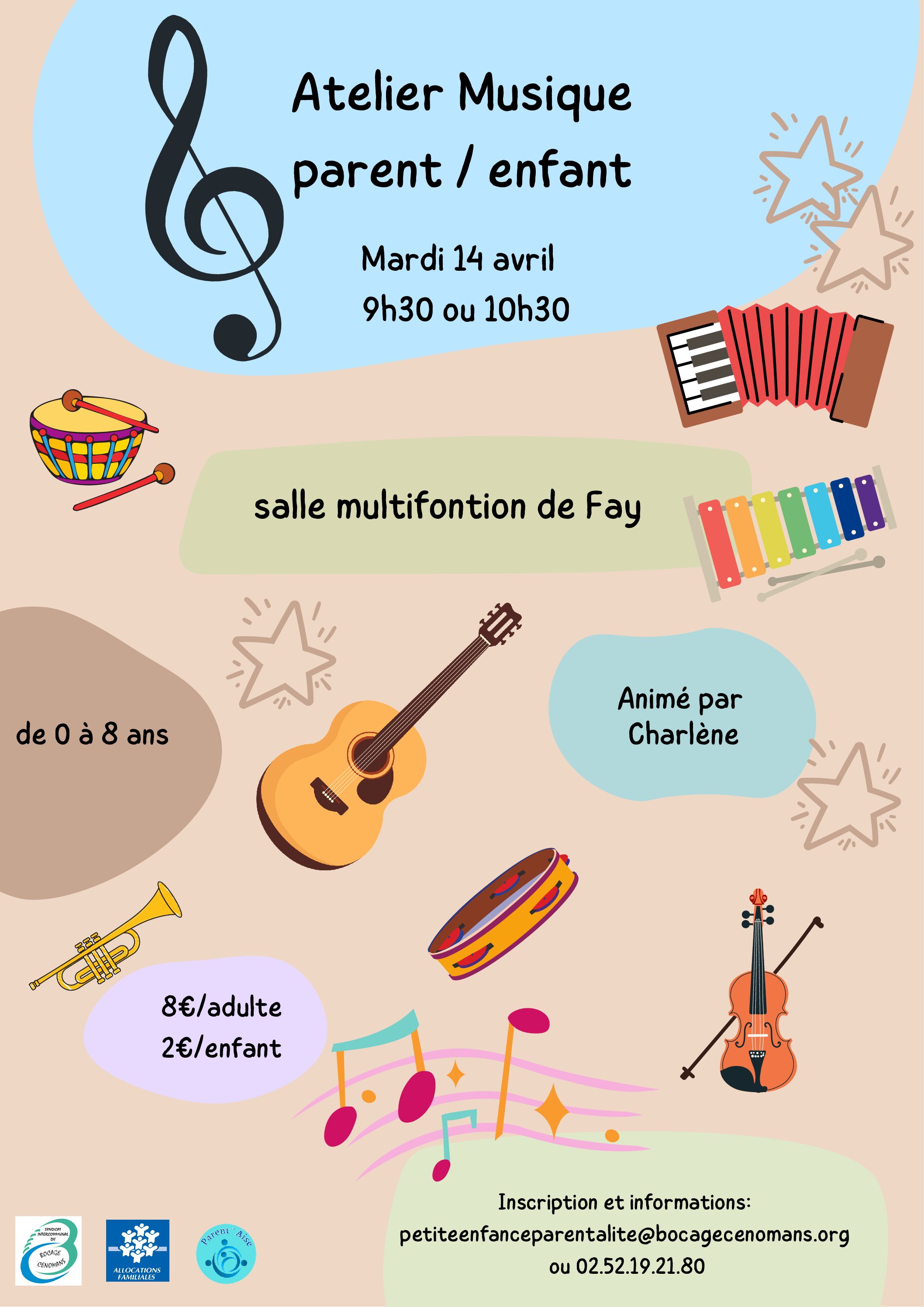 Dans le cadre de nos ateliers parentalité, nous vous proposons un atelier musique pendant les vacances d’avril, spécialement conçu pour les enfants de 0 à 8 ans.