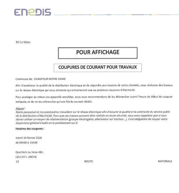 COUPURE ÉLECTRICITÉ POUR TRAVAUX ENTRE 9H ET 16H30