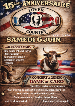 Samedi 6 juin 2026 à partir de 10h30 Nombreuses animations Concert country « Dame de Caro » à 20h30 Repas traiteur…