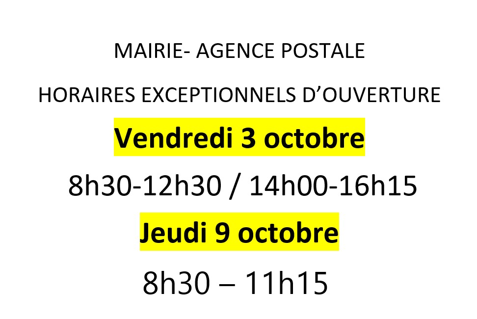 EXCEPTIONNEL HORAIRES MODIFIÉS Vendredi 3 octobre 8h30 -12h30 / 14h -16h15 Jeudi 9 octobre 8h30 – 11h15 Merci de…
