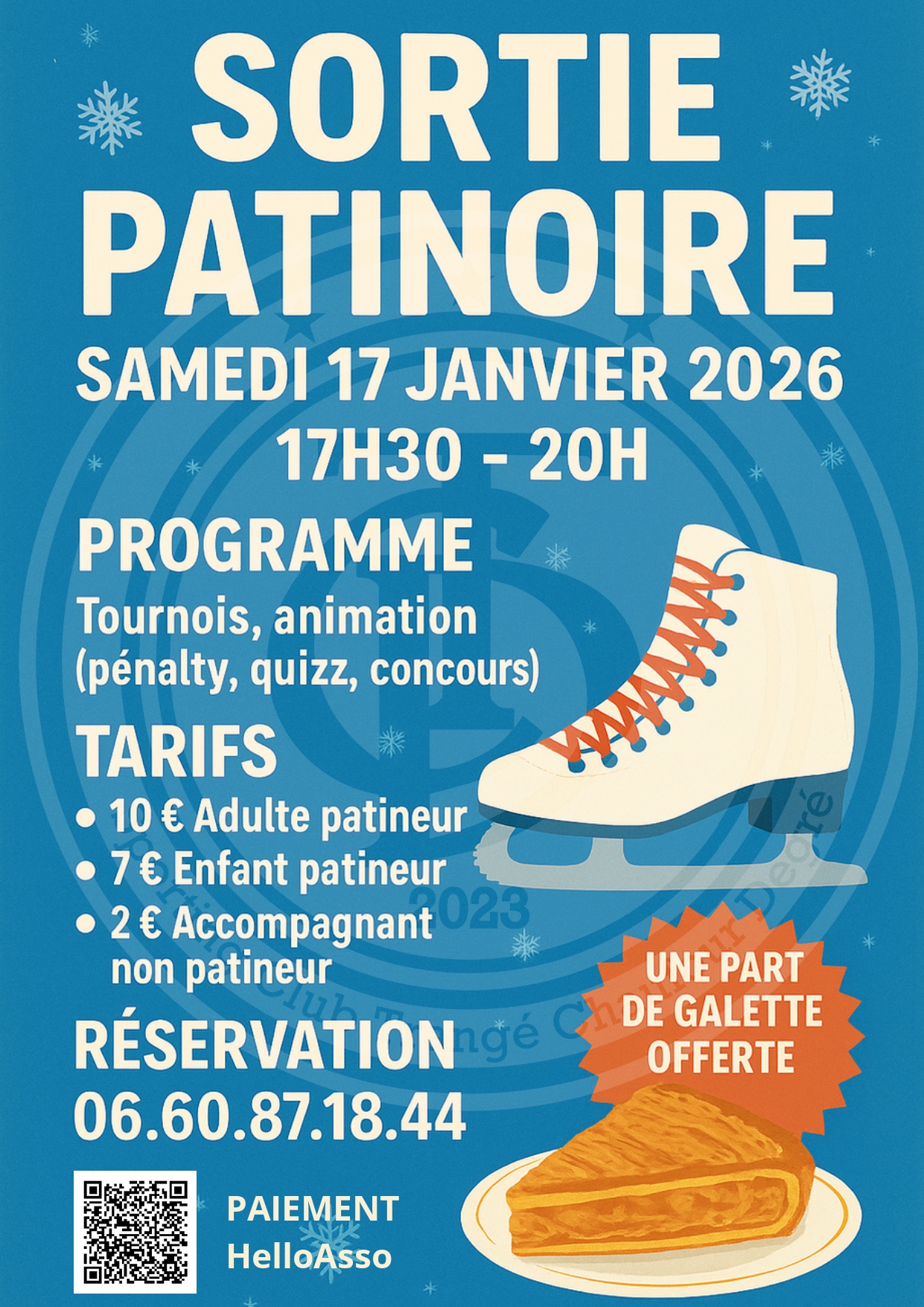 Samedi  17 janvier 2026 de 17h30 à 20h, le Sporting Club TCD privatise cityglace.