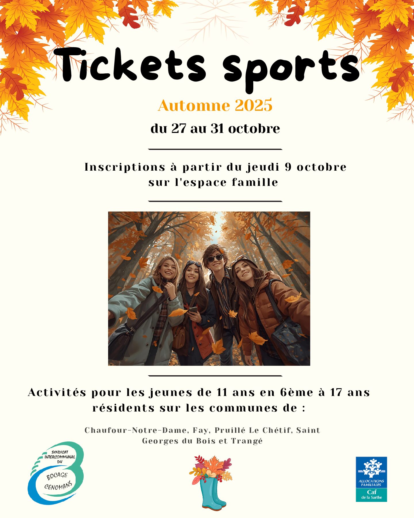 Ouverture des inscriptions des tickets sports demain jeudi 9 octobre à 9h sur l’espace familles.